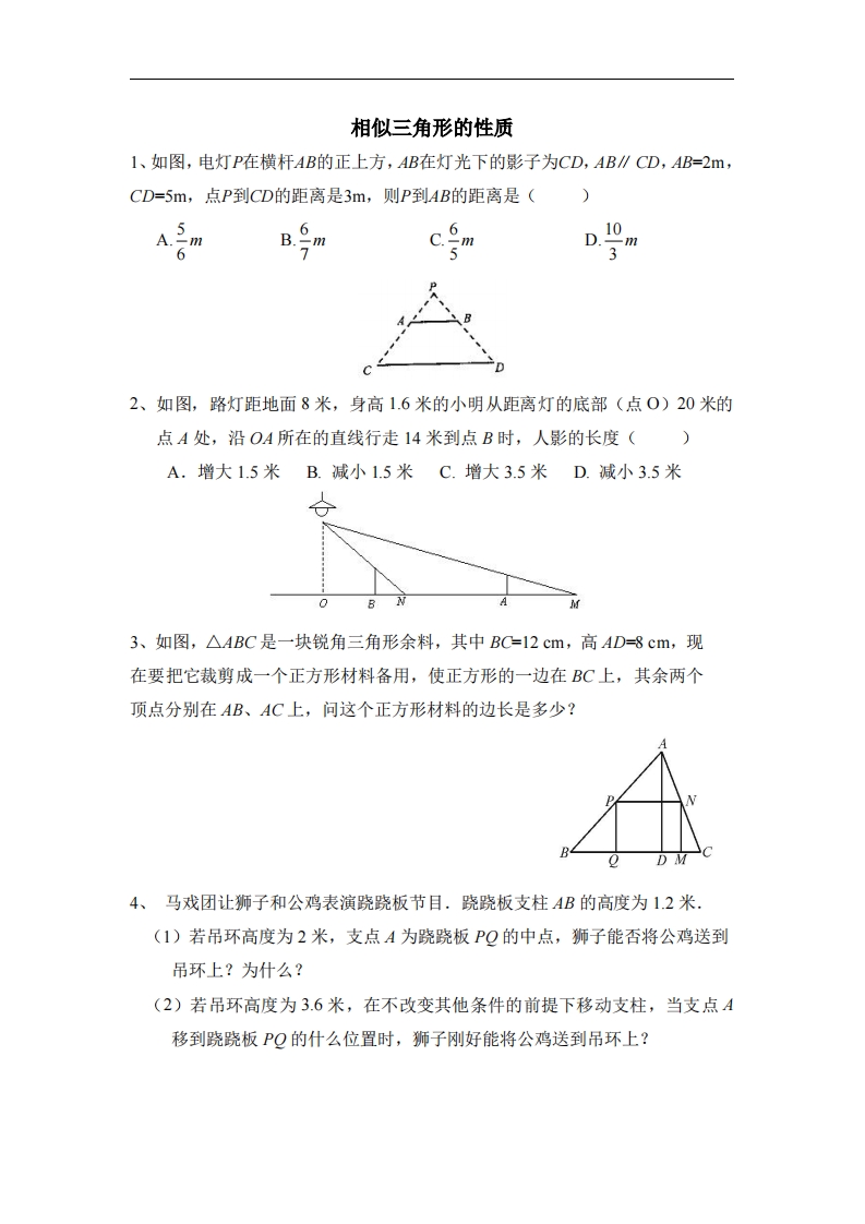 九年级(上)数学《相似三角形的性质》拔高练习(青岛版)