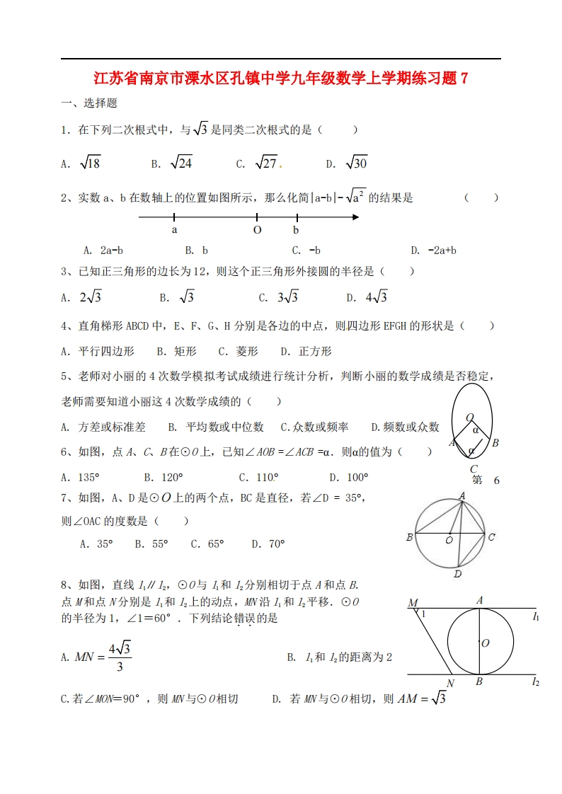 首页九年级数学上册九年级(上)数学上学期练习题7 (苏科版)