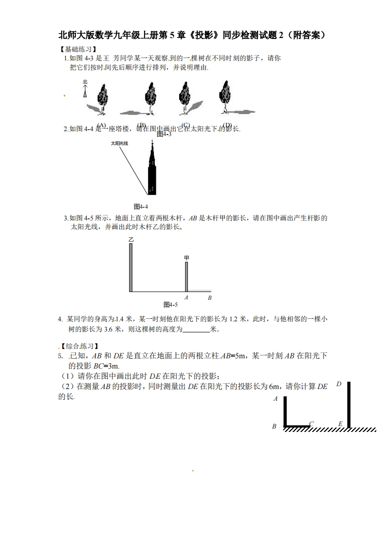 九年级(上)数学投影同步检测试题2《北师大版》