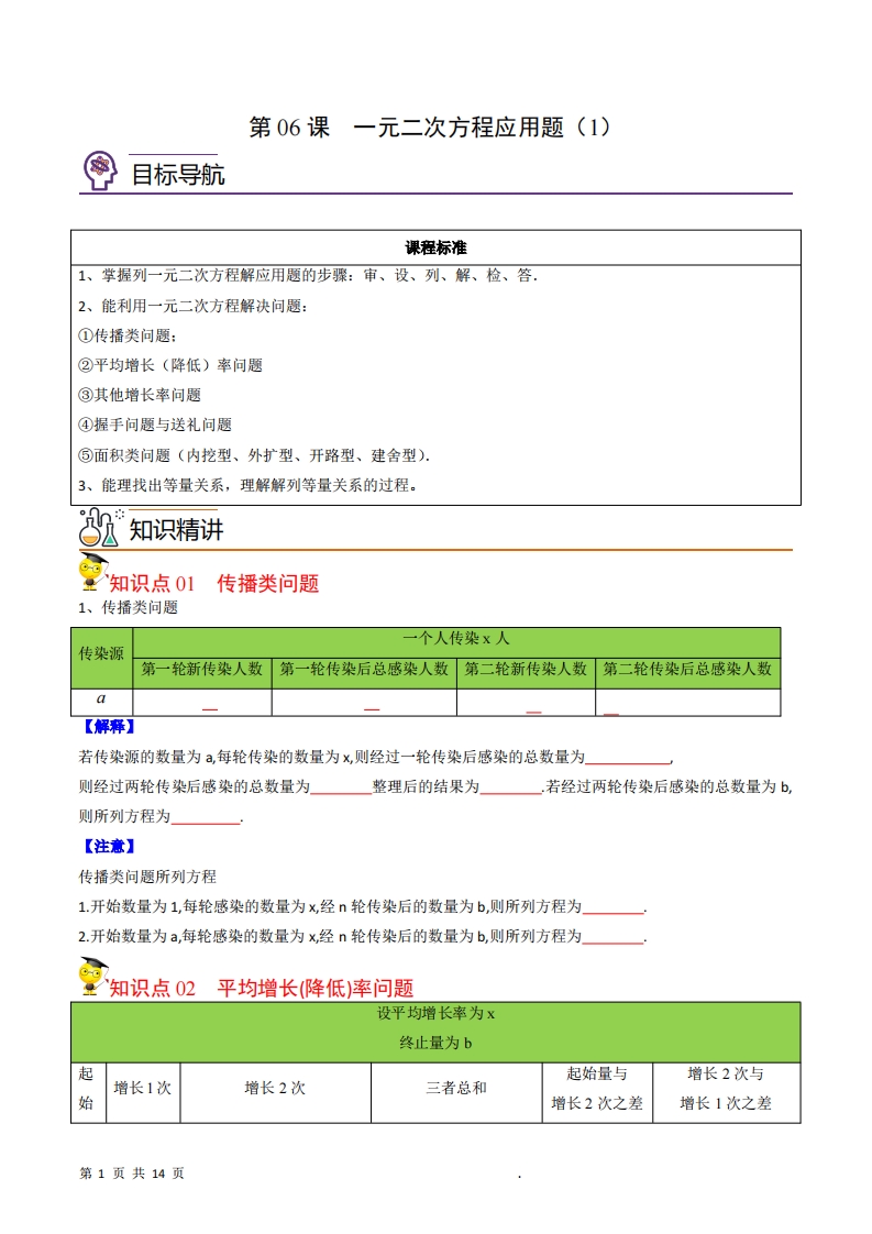九年级(上)数学一元二次方程应用题1同步讲义(人教版)
