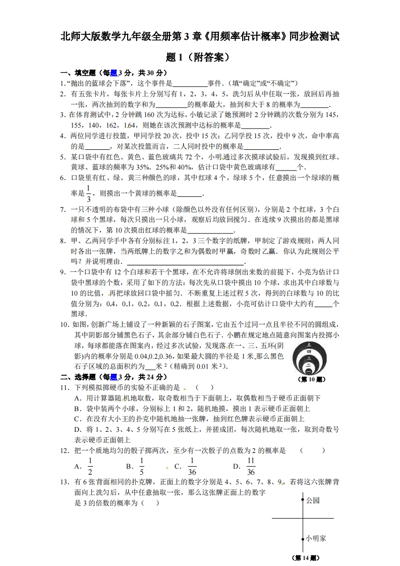 首页九年级数学上册九年级(上)数学用频率估计概率同步检测试题《北师大版》