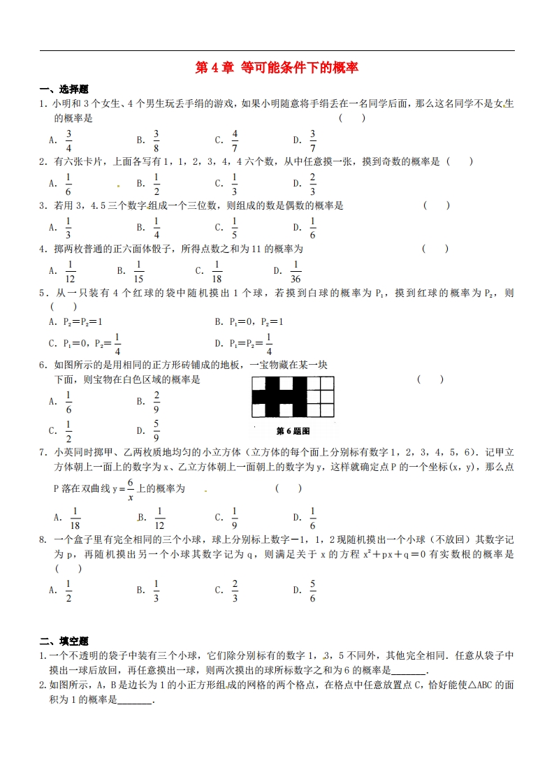 首页九年级数学上册九年级(上)数学第4章 等可能条件下的概率练习(苏科版)