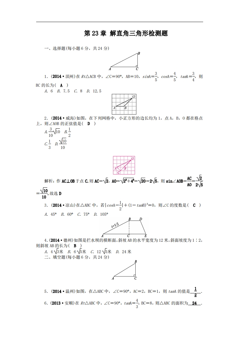 首页九年级数学上册九年级(上)数学第23章 解直角三角形检测题(沪科版)