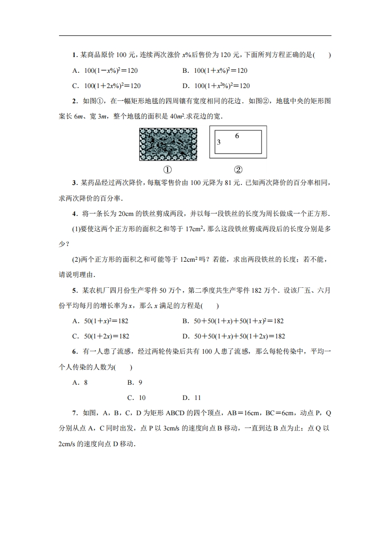 首页九年级数学上册九年级(上)数学第24章专题练习4 一元二次方程的应用(冀教版)