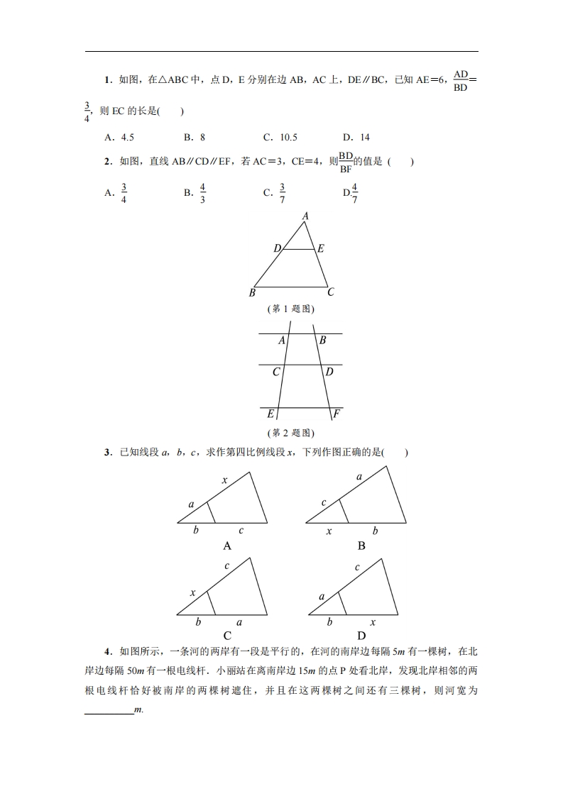 首页九年级数学上册九年级(上)数学第25章专题练习2 平行线分线段成比例(冀教版)