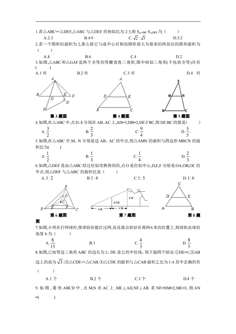九年级(上)数学第25章专题练习7 图形的相似1(冀教版)