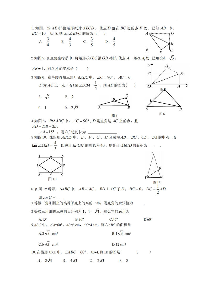 首页九年级数学上册九年级(上)数学第26章专题练习4 锐角三角函数4(冀教版)