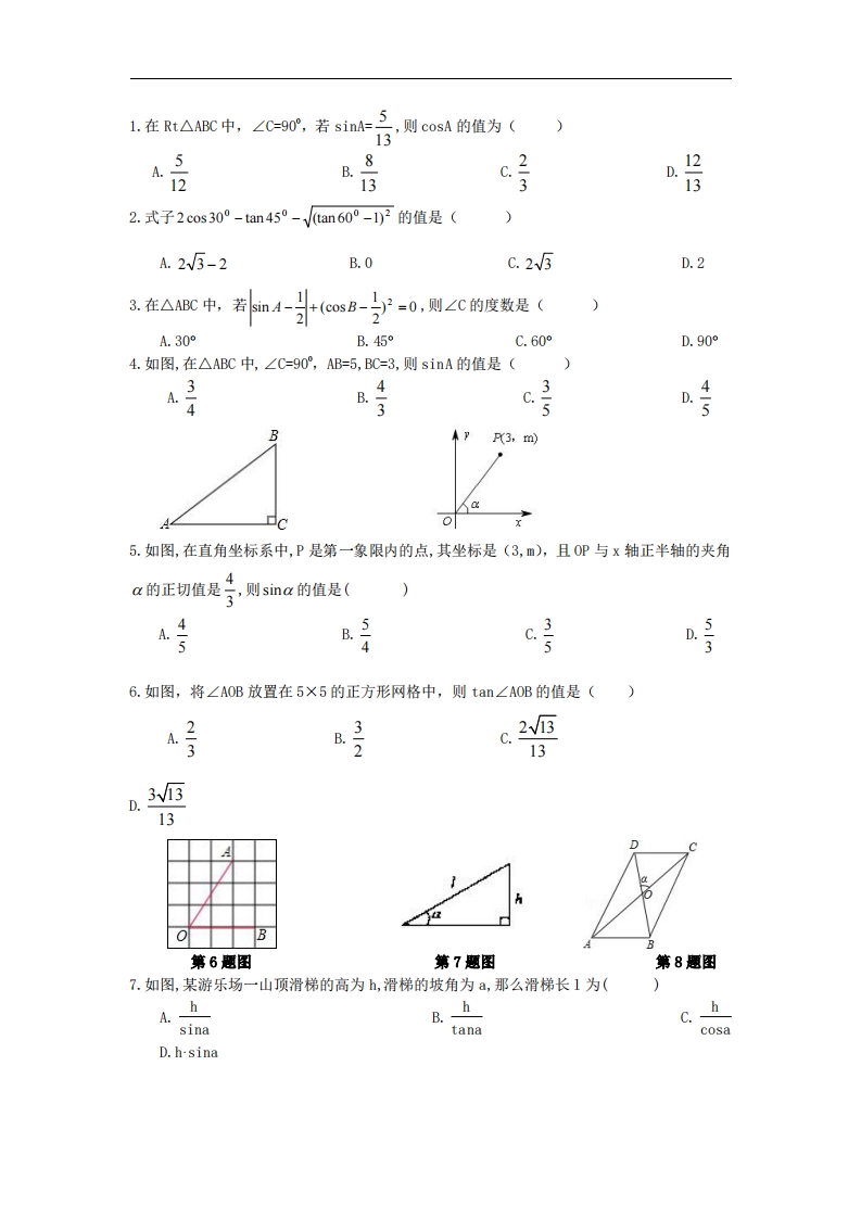 首页九年级数学上册九年级(上)数学第26章专题练习6 解直角三角形及其应用1(冀教版)