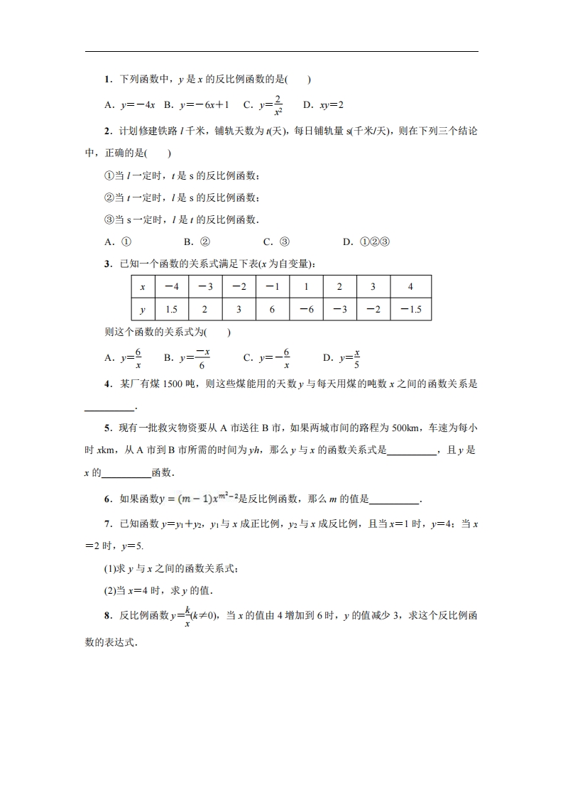 首页九年级数学上册九年级(上)数学第27章专题练习1 反比例函数(冀教版)
