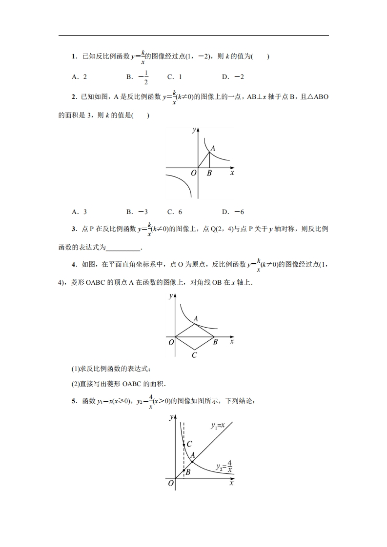 首页九年级数学上册九年级(上)数学第27章专题练习2 反比例函数的图像和性质(冀教版)