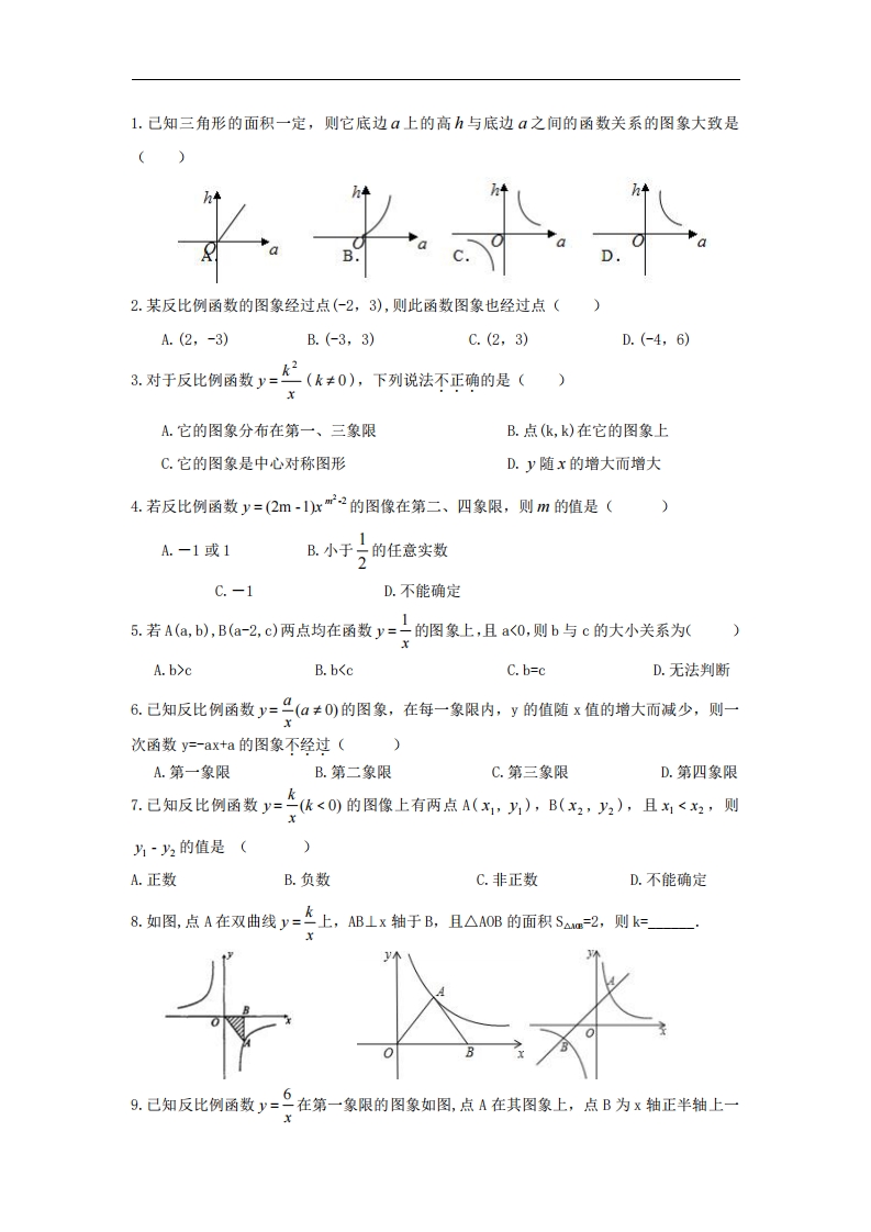 首页九年级数学上册九年级(上)数学第27章专题练习4 反比例函数综合1(冀教版)
