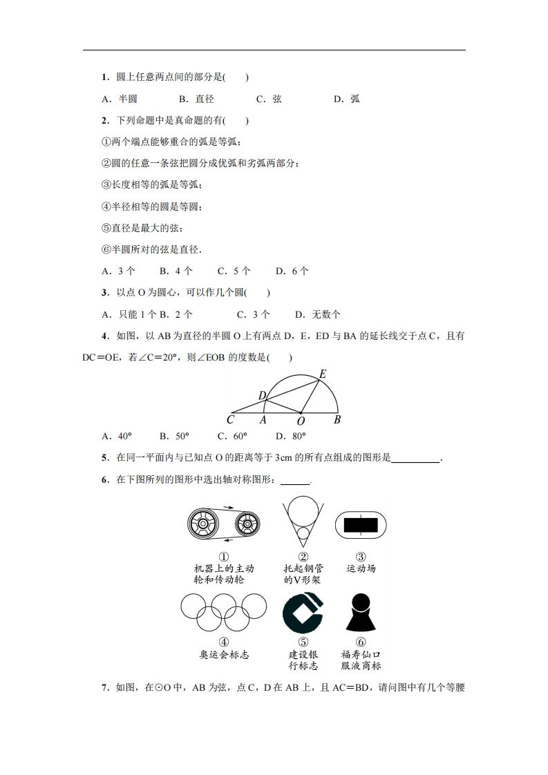 首页九年级数学上册九年级(上)数学第28章专题练习1 圆的概念及性质1(冀教版)