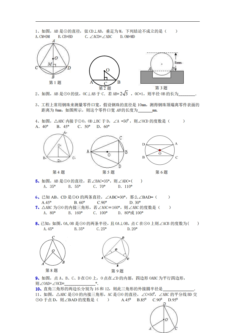 首页九年级数学上册九年级(上)数学第28章专题练习2 圆的概念及性质2(冀教版)