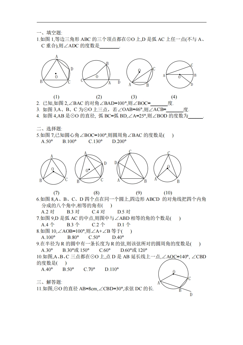 九年级(上)数学第28章专题练习6 圆周角和圆心角2(冀教版)