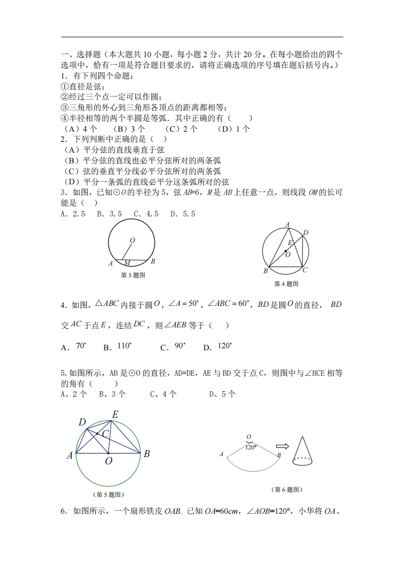 九年级(上)数学第二十八章 圆(冀教版)