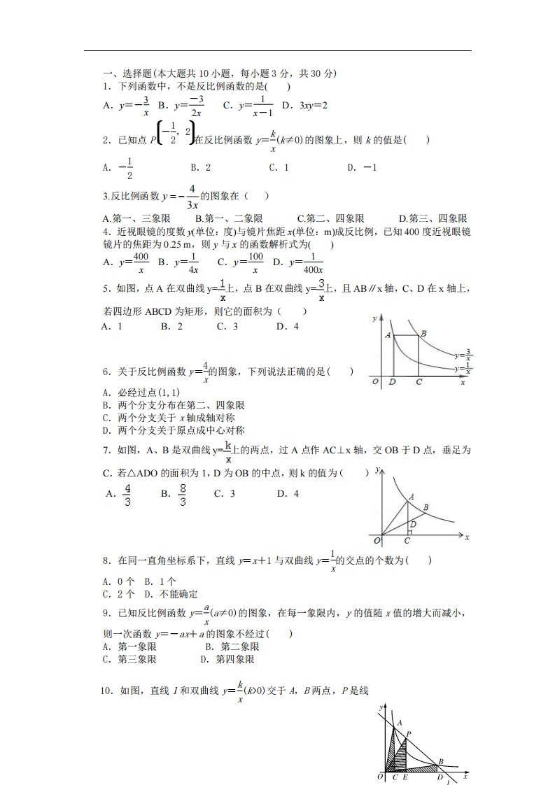 九年级(上)数学第二十七章 反比例函数3(冀教版)