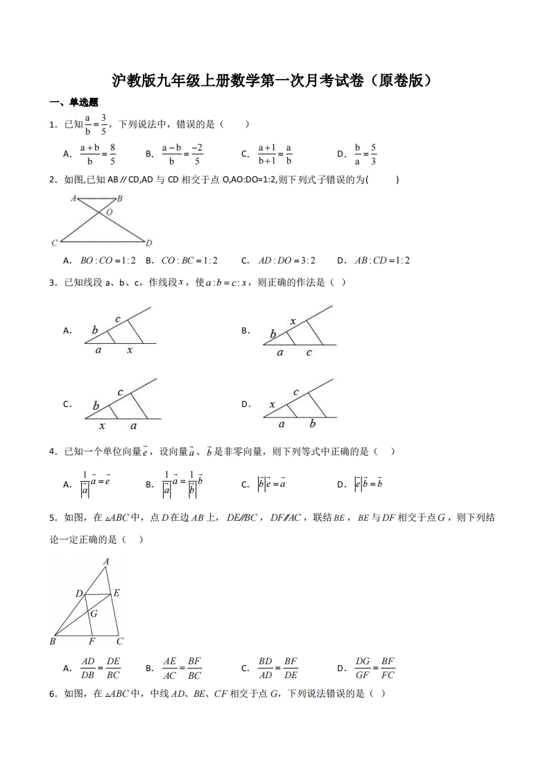 首页九年级数学上册九年级(上)数学第一次月考卷1(沪教版)