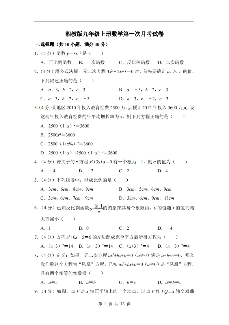 首页九年级数学上册九年级(上)数学第一次月考试卷(湘教版)
