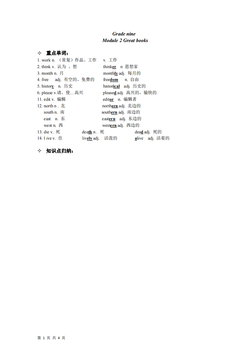 九年级(上)英语 Module 2(外研版)