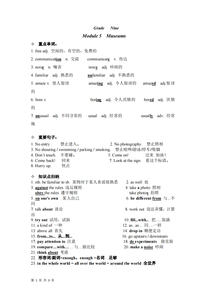 九年级(上)英语 Module 5(外研版)