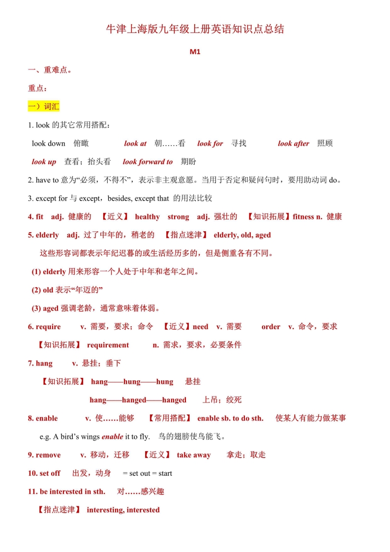 首页九年级英语上册九年级(上)英语 Module1知识点及语法点(沪教版)