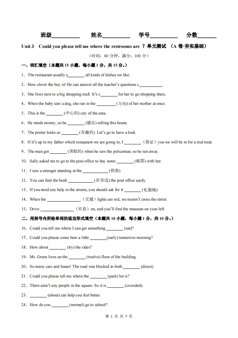 首页九年级英语上册九年级(上)英语 Unit 3 A卷夯实基础(人教版)