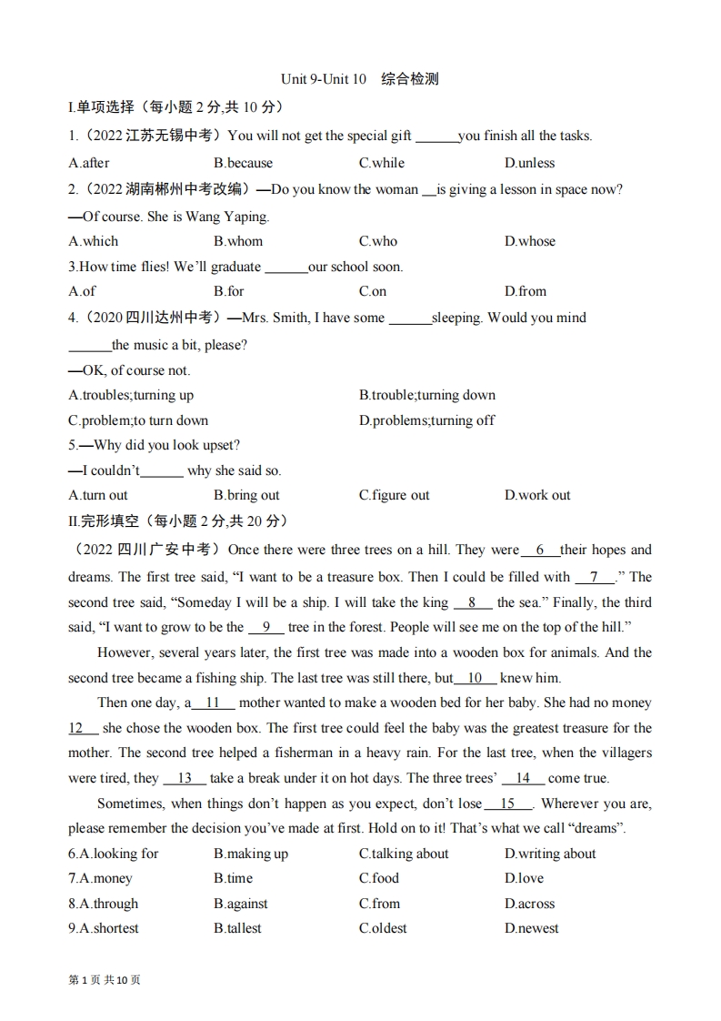 九年级(上)英语 Unit 9-10 综合检测(冀教版)