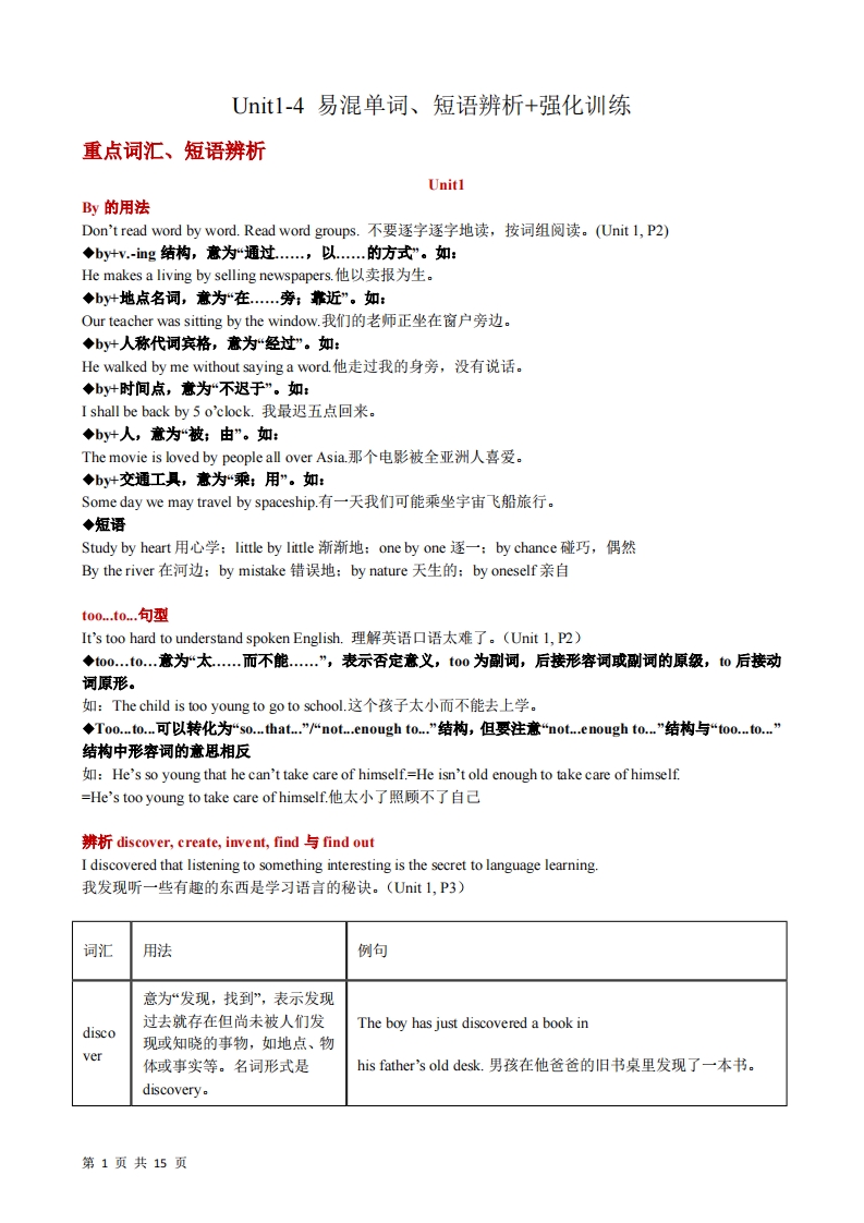 首页九年级英语上册九年级(上)英语 Unit1-4易混单词 短语辨析 强化训练(人教版)