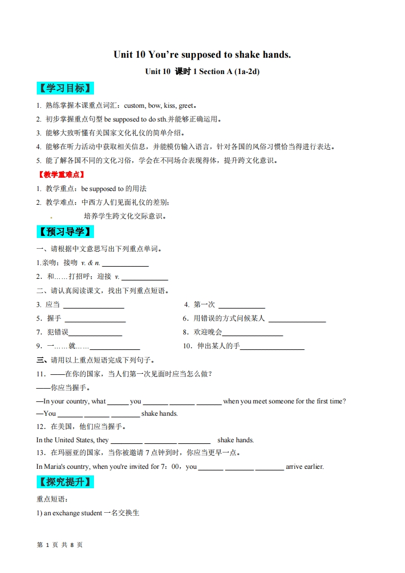 九年级(上)英语 Unit10课时1(人教版)