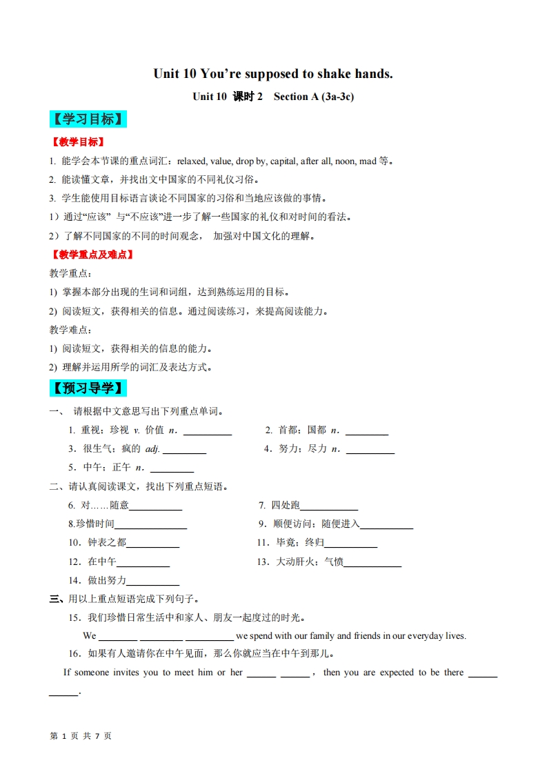 九年级(上)英语 Unit10课时2(人教版)