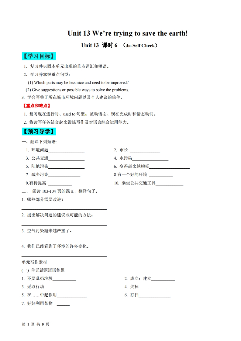 首页九年级英语上册九年级(上)英语 Unit13课时6(人教版)